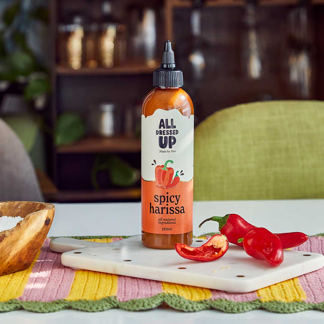 Our Spicy Harissa Dressing delivers a fiery blend of chili peppers and spices, bringing bold heat and depth to your dishes. It’s an excellent choice for spicing up salads, grains, and grilled meats.